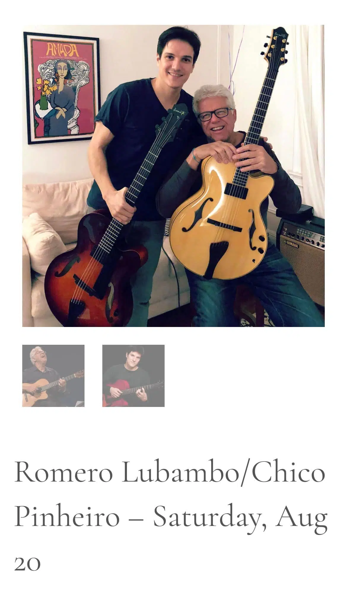 Well, the Benedetto Miner release concert is sold out, but this alternative concert in nearby Healdsburg, CA features BG Artists extraordinaire, Chico Pinheiro and Romero Lubambo, on Saturday, August 20 with a bonus anniversary party on Sunday the 21st. Click this link to get your tickets.