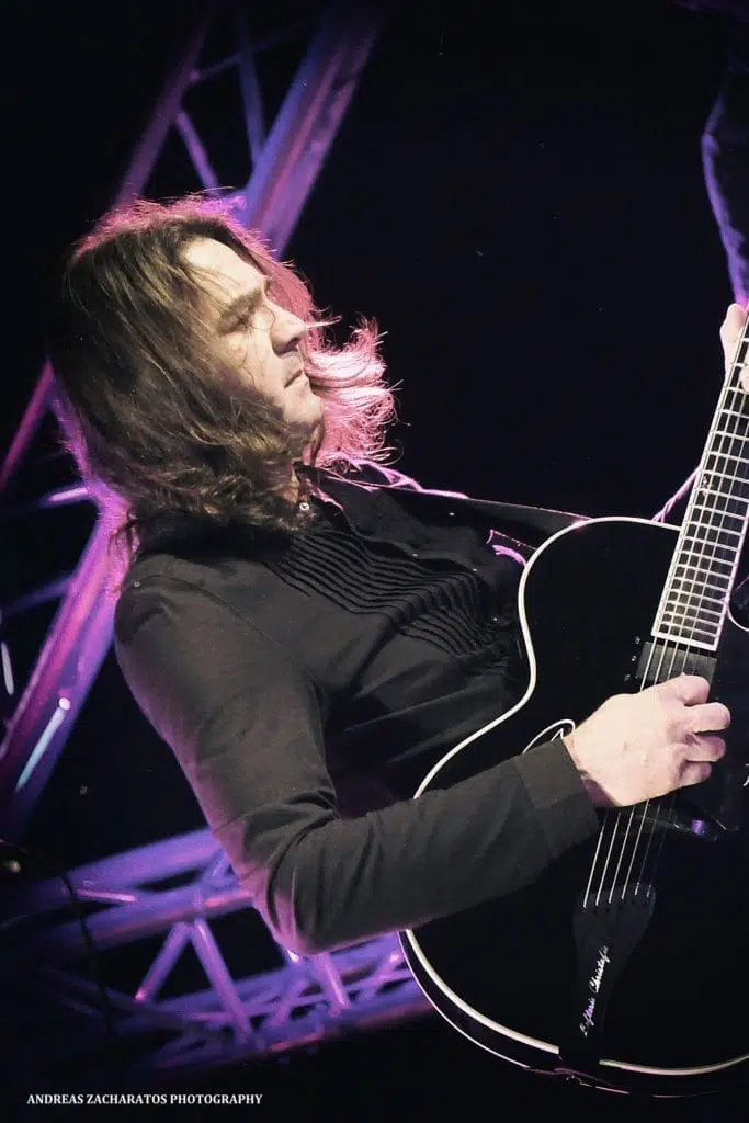 Lefteris plays a Benedetto Bravo Deluxe 40th Anniversary model.