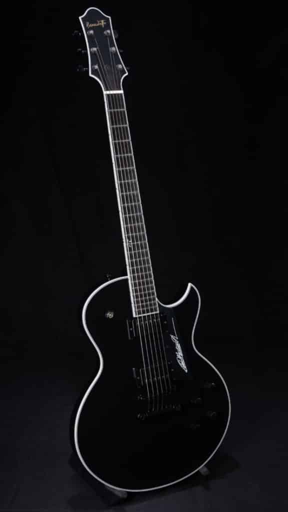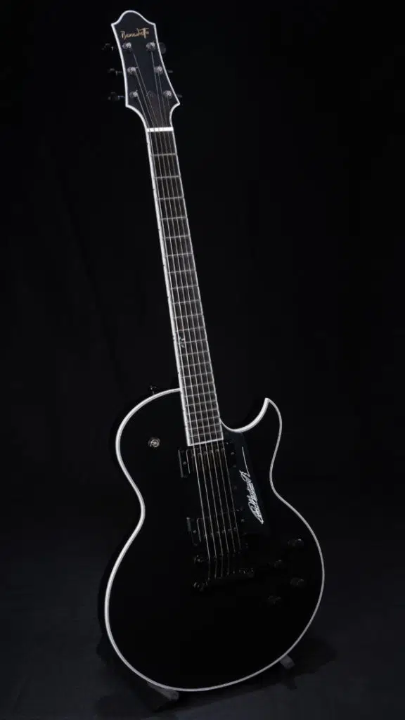 Understated and elegant, the pure Black, nitrocellulose finish on this guitar gives a stunning visual impression. All standard with Pat’s preferred setup, all black hardware, and dual Benedetto A-6 pickups.